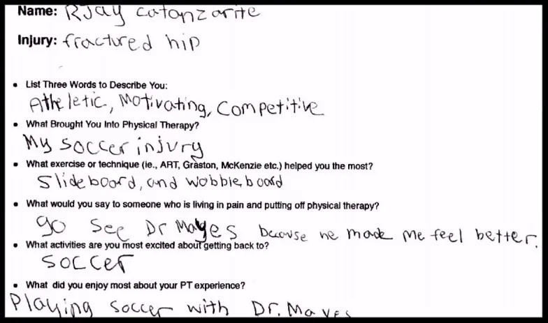 This soccer sensation has a special place in my heart. His energy, enthusiasm and love of soccer reminds me so much of myself at his age. His road to full recovery has been challenging based on the nature of his injury, but this young man remained positive and optimistic throughout his journey.